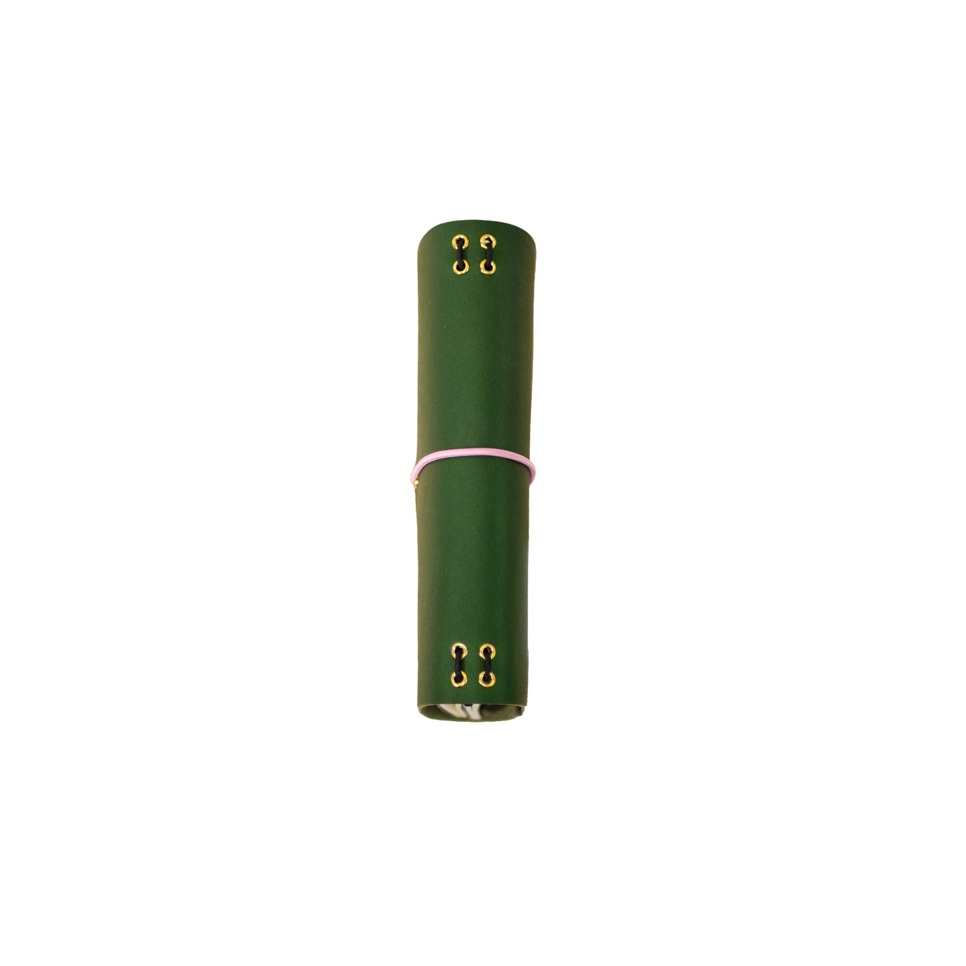 Handcrafted in Los Angeles from Italian vegetable-tanned leather. Compact and portable, it develops a rich patina over time and accommodates pocket notebooks (3.5" × 5.5"), Moleskine Pocket, and even a passport.